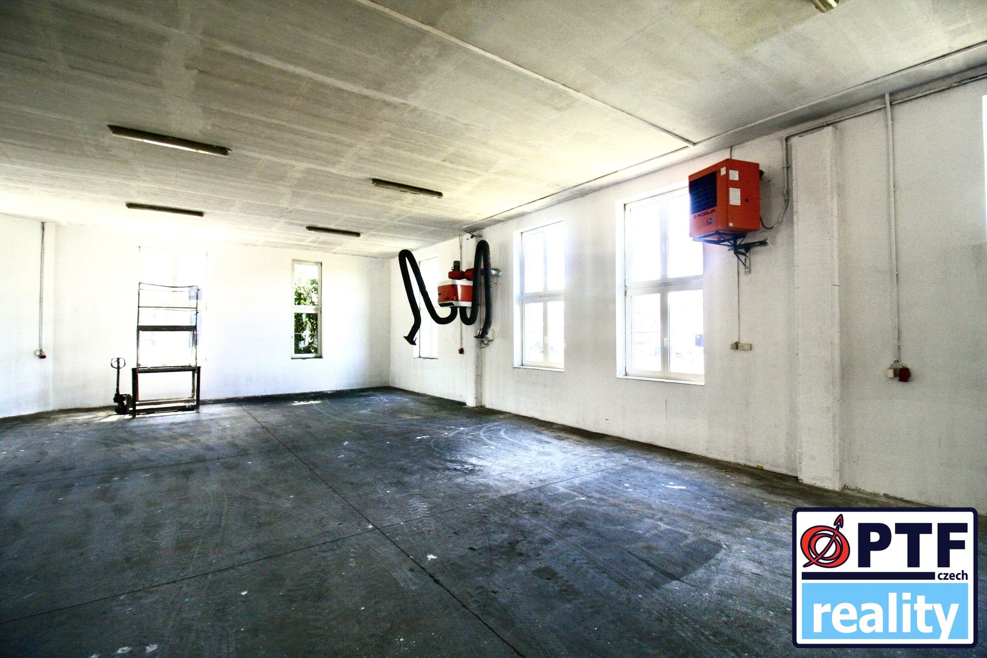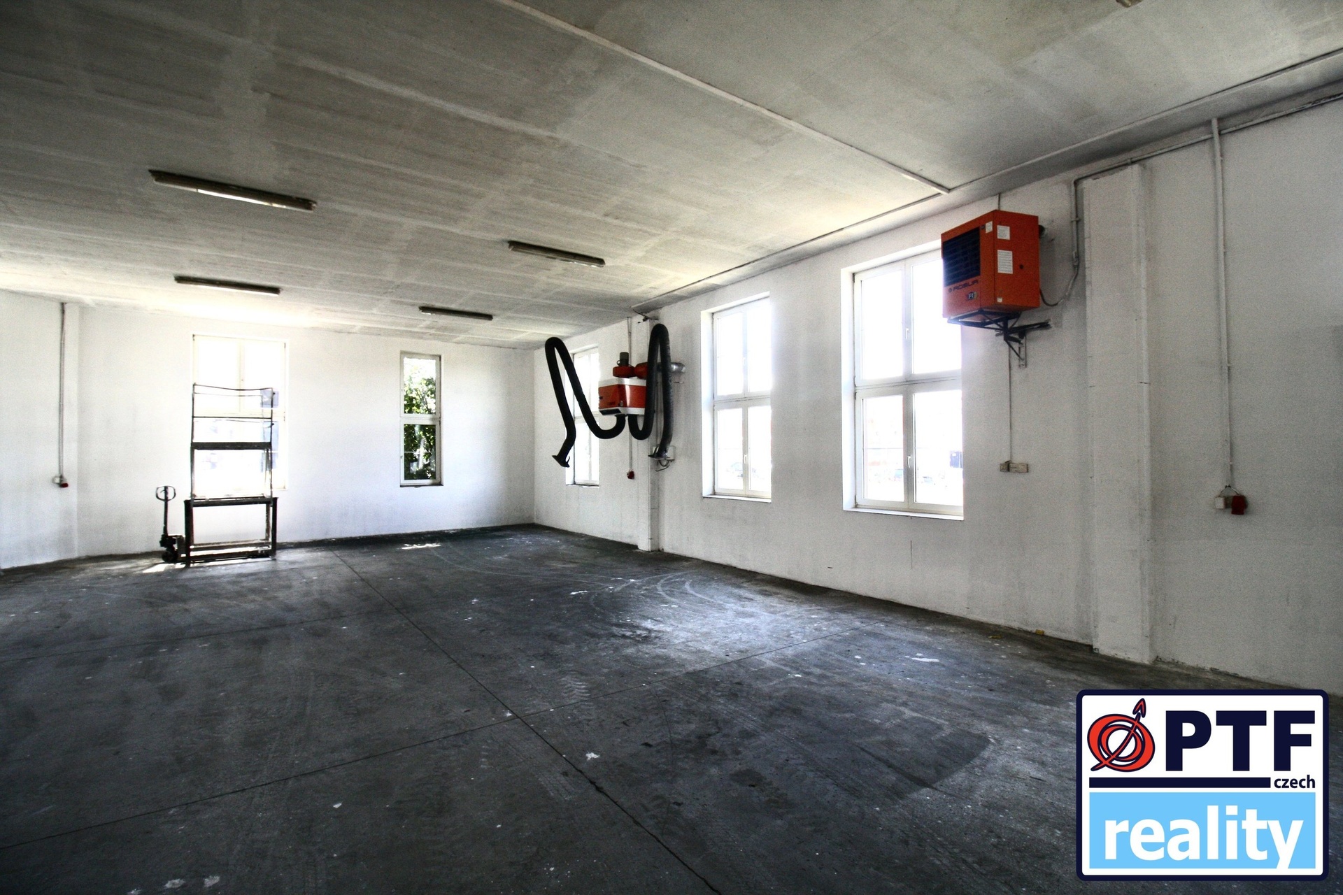 Podlaha: Betonová podlaha vhodná pro těžší techniku i skladování.